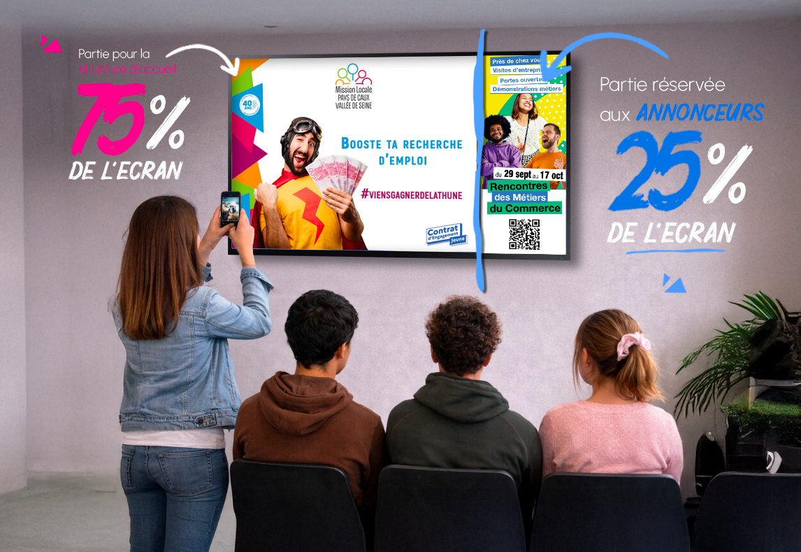 Média Jeunes est un écran d’affichage dynamique couplé à un logiciel de gestion de contenu.